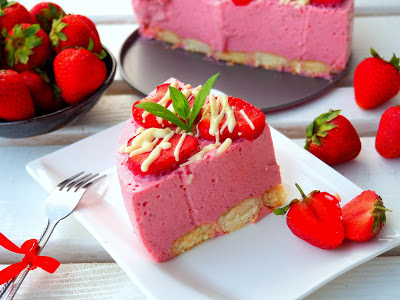 Sernik na zimno z musem truskawkowym. Jest to ciasto bez pieczenia, wykonane…