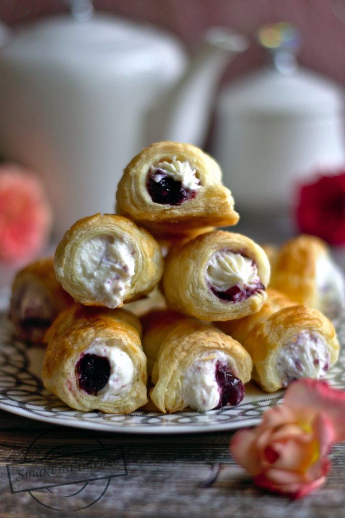 Pyszne rurki z kokosową masą twarogową oraz przełamującym jej słodycz dżemem z…
