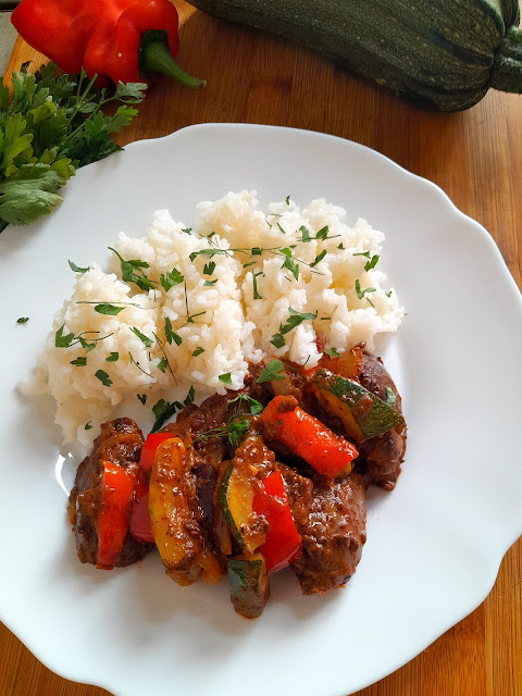 Wątróbka drobiowa duszona z cukinią i paprykę to pyszny sposób na szybki…