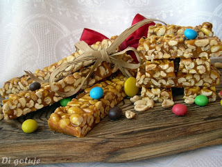 Przepis z blogu: Słodka Strona.Batoniki wyszły pyszniejsze – niż się spodziewałam.Karmel jest lekko miękki i jak dotąd nie