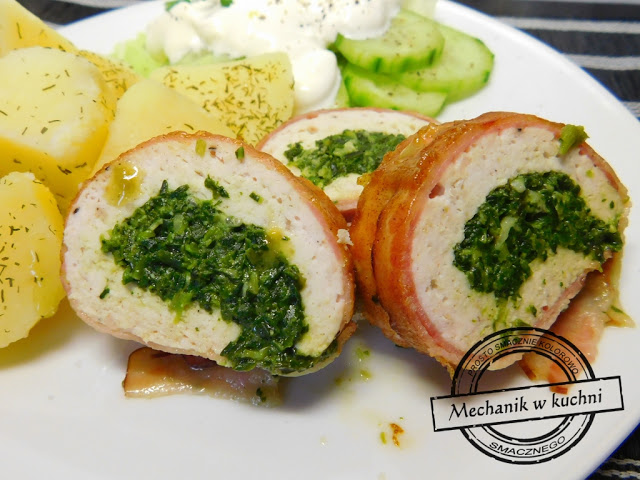 40 dag filetu drobiowego (nieduża podwójna pierś)20 dag szpinaku