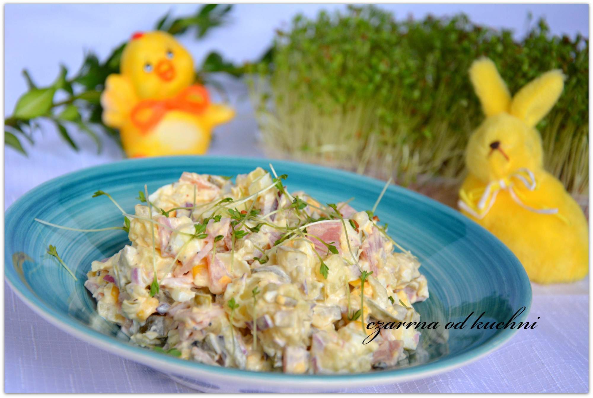 Tania i prosta w przygotowaniu 🙂 Składniki: 4-5 ziemniaków 4 jajka 1/2 puszki kukurydzy 4 kiszone ogórki 1 czerwona cebula 10 dkg dobrej szynki wieprzowej 2 łyżki majonezu 1 łyżeczka …