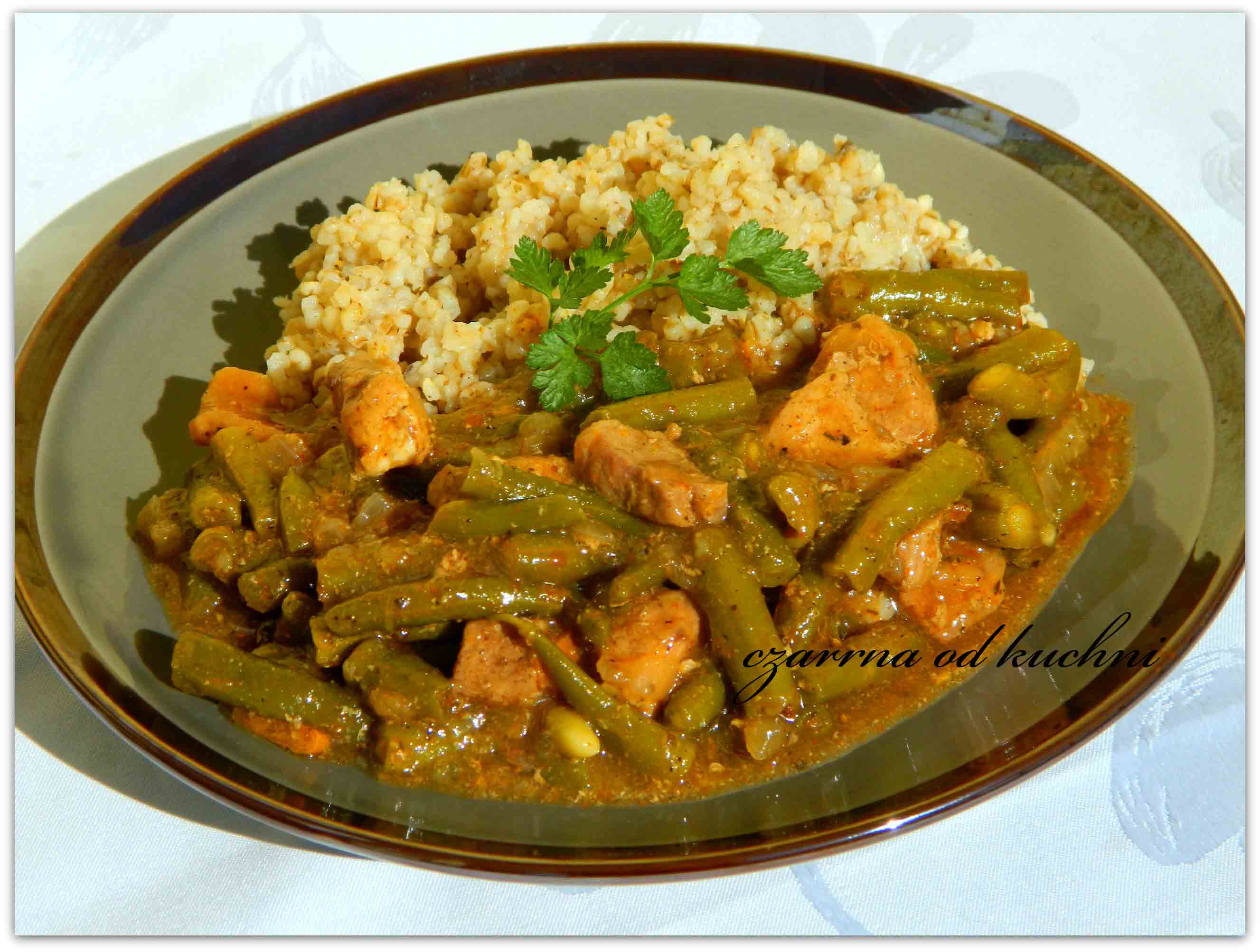 Łatwe danie na obiad Gulasz Składniki 50 dkg mięsa gulaszowego 2 cebule 1 szklanka mrożonej fasolki szparagowej sól, pieprz jałowiec mielony słodka papryka 2 papryczki kajeńskie 1 łyżka mąki ziemniaczanej …