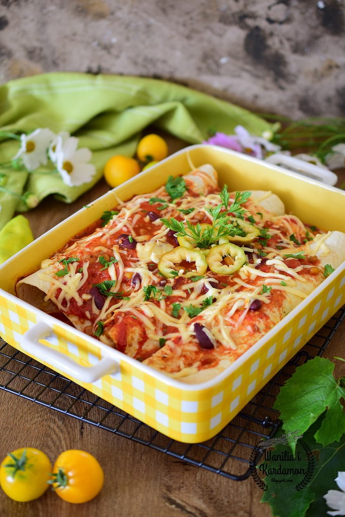 Enchilada-czyli zawijane tortille z ryżowym nadzieniem i warzywami polane sosem pomidorowym i…