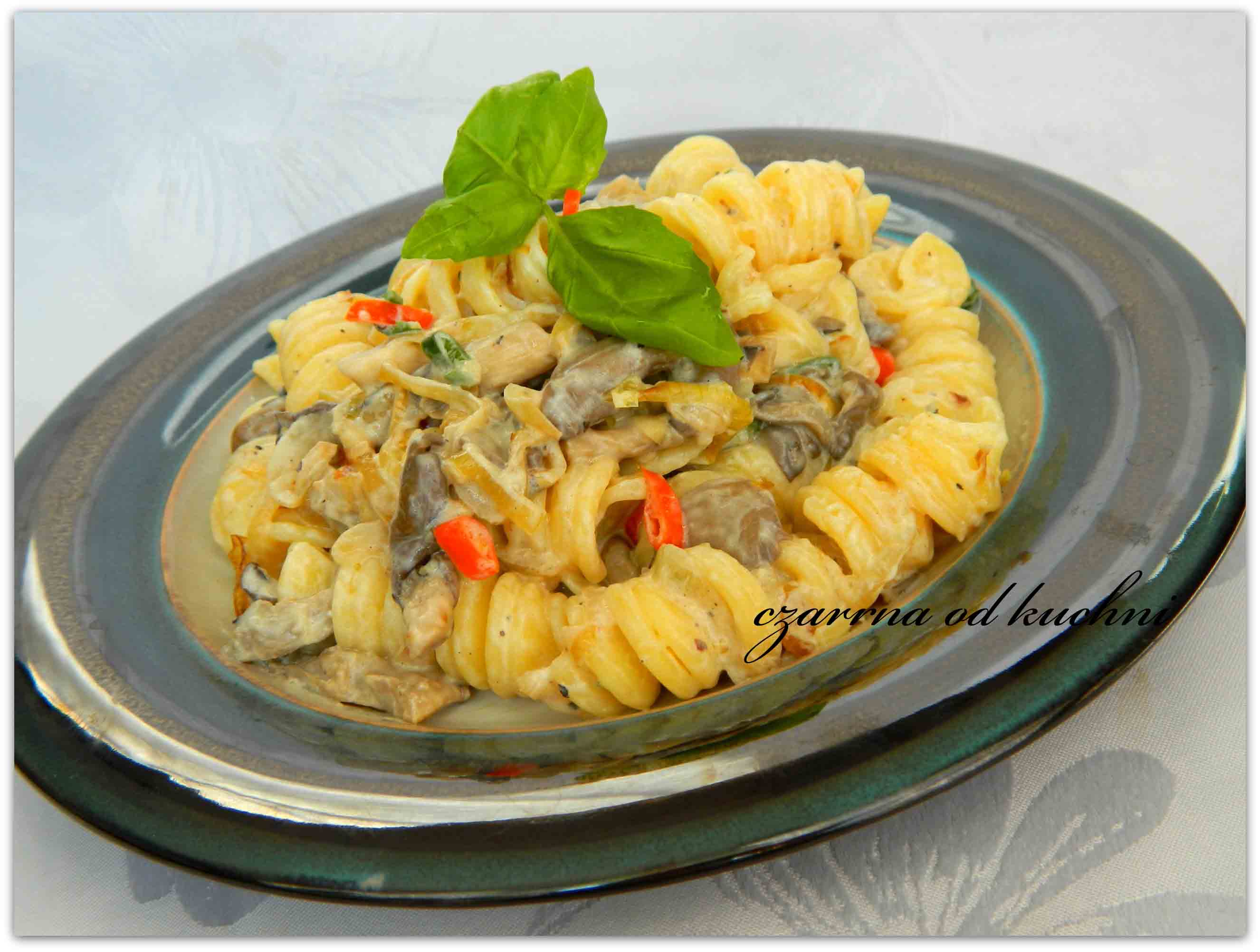 Składniki 300 g makaronu 250 g boczniaków 4 ząbki czosnku 3 papryczki pepperoni 2 cebule 50 g masła sól, pieprz 1 mały jogurt naturalny Sposób przygotowania Makaron ugotować al dente. …