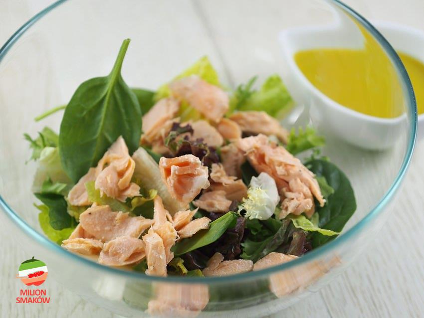 Ta sałatka pochodzi z przepisu Roberta Makłowicza. Bardzo mi się spodobała bo można ją przygotować naprawdę szybko z dosłownie kilku składników a fantastyczny idealnie dopełnia całość. Może Wam też przypadnie do gustu?