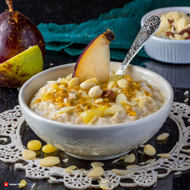 Owsianka z marakują, gruszką i orzechami macadamia / Oatmeal with passion fruit, pear and macadamia nuts