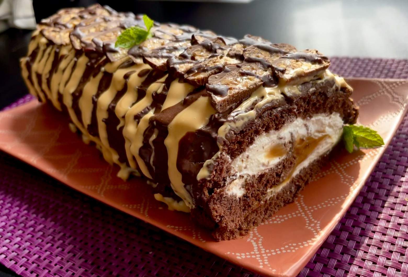 Rolada snickers Czekoladowo-orzechowe ciasto z karmelem i kremem śmietankowym, które po prostu…