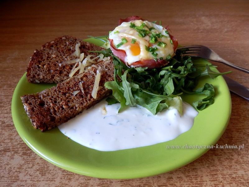 Takie śniadanie to coś niezwykle wiosennego, taki koszyczek to powiew wiosny wtedy, kiedy jeszcze nie rozwinęły się pierwsze warzywa w ogródku – doładowuje wspaniałą energią, smakuje niesamowicie z sprawą szynki parmeńskiej, rukola gwarantuje nam zastrzyk witamin. : ) Polecam! : )