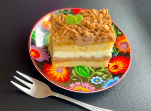Obłędna szarlotka z kremem budyniowym Kilkuwarstwowa pieczona szarlotka na dwukolorowym cieście kruchym,…