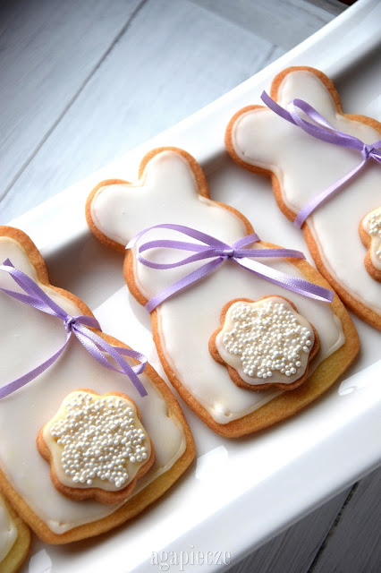 W tym roku stawiam na prostotę jeśli chodzi o wielkanocne ciasteczka – tradycyjne kruche ciastka w formie uroczego zajączka udekorowane białym lukrem, bo czasami mniej znaczy więcej 🙂