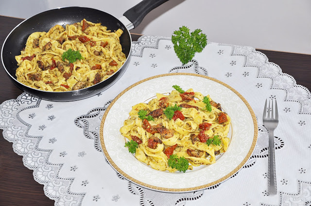 Makaron z sosem pesto i suszonymi pomidorami
