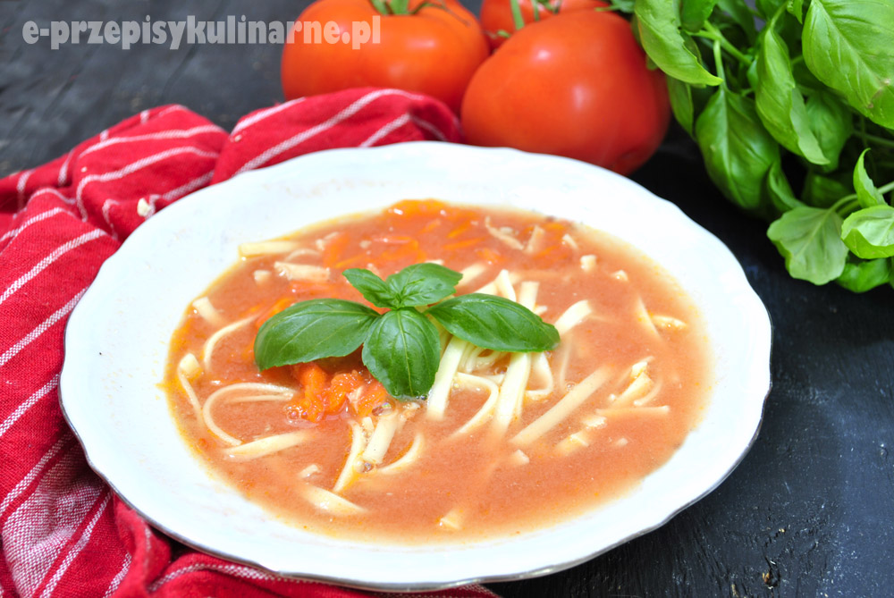 Przepis na smaczną zupę pomidorową z pomidorami z puszki i makaronem. Składniki:…