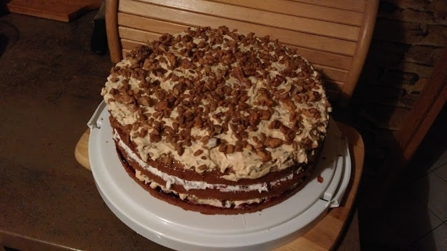 Druga wersja tortu z przepisu na ciasto ze słonecznikiem poniżej, tym razem na gotowych biszkoptach. Polecam.