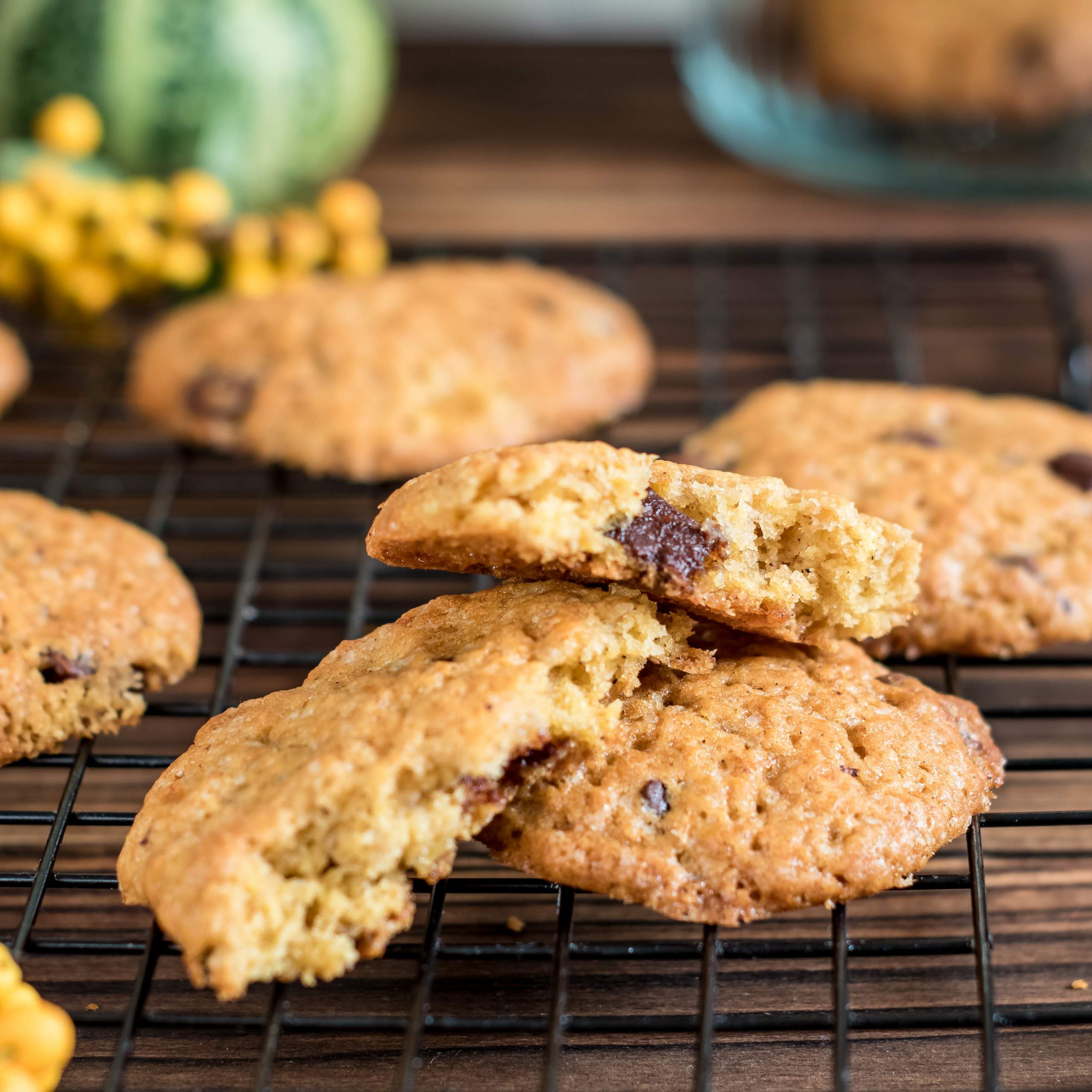 Ciasteczka dyniowe w stylu amerykańskim, mokre, lekko ciągnące, z dużą ilością czekoladowych…