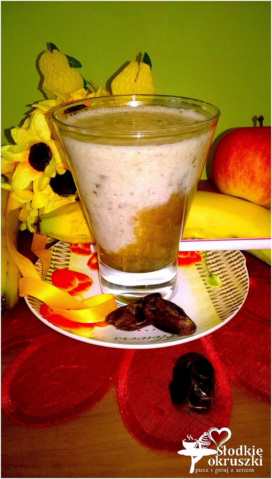 Pomysł na drugie śniadanie. Koktajl kawowo daktylowy z płatkami orkiszowymi.