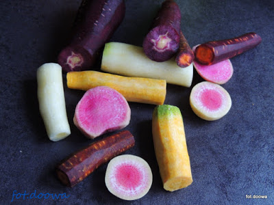 Jakiś czas temu zakupiłam całą masę kolorowych marchwi i były to żółte, czarne, fioletowe i białe.