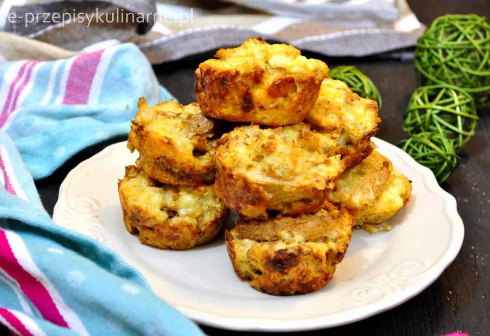 Prosty przepis, który nie sprawi trudności nawet osobom nie potrafiącym gotować, na wytrawne babeczki z chleba, idealne na imprezową przekąskę. Jest to również świetny sposób na wykorzystanie czerstwego pieczywa. Bardzo dobrze smakują na ciepło i na zimno z sosem czosnkowym.