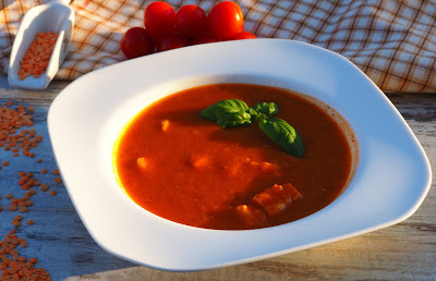 Zupa pomidorowa w nietypowej odsłonie… krem ze świeżych pomidorów z dodatkiem kurczaka…