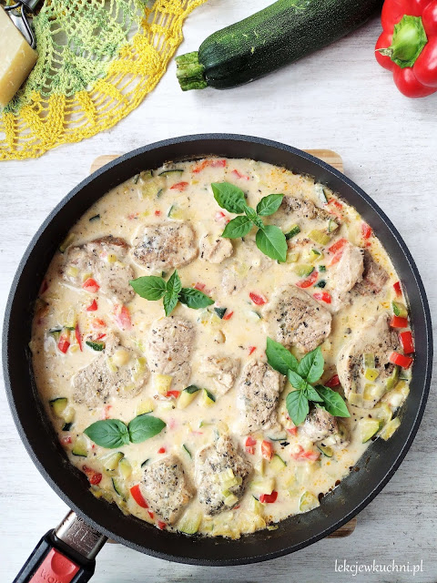 Polędwiczki wieprzowe w sosie śmietanowym z warzywami