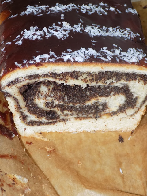 Składniki:500 g mąki20 g drożdży1 jajko2 żółtka1/2 szklanki cukru1 łyżka cukru waniliowego2/3 szklanki mleka100 g masłaszczypta solimasa1 puszka masy makowej1 szklanka bakalii2 białkadodatkowojajko do posmarowania