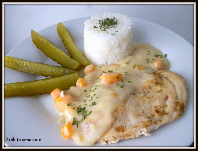 Dziś na obiad przygotowałam pyszną pierś z kurczaka w sosie z serków topionych.