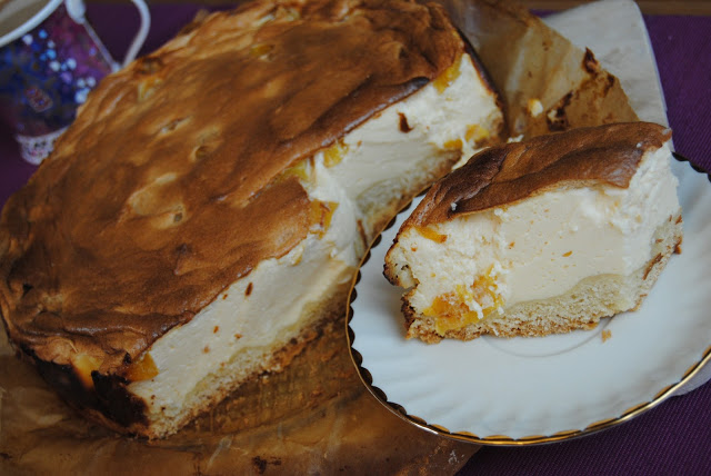 Był już zwykły sernik (link), był także sernik z wiśniami (link), czas na wersję z brzoskwiniami.