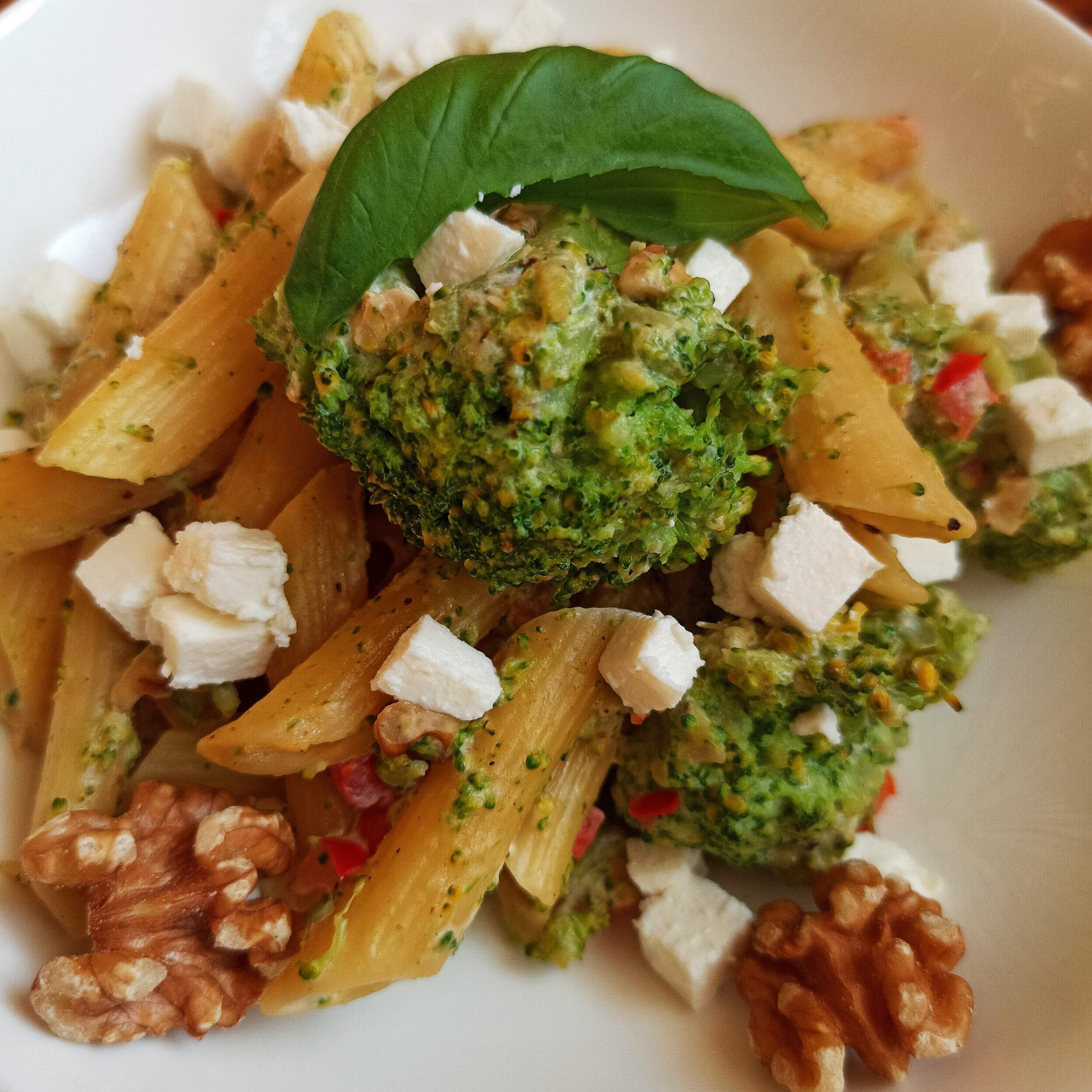 Przepis na ekspresowy w przygotowaniu, pyszny makaron z brokułem, papryką, orzechami włoskimi…