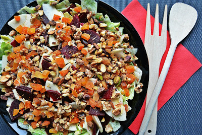Lekka sałata, bogate w pierwiastki buraki, sprzyjające urodzie morele oraz symbol mądrości – orzechy. To składniki sałatki, której rewelacyjny smak podkreśla delikatny sos curry.