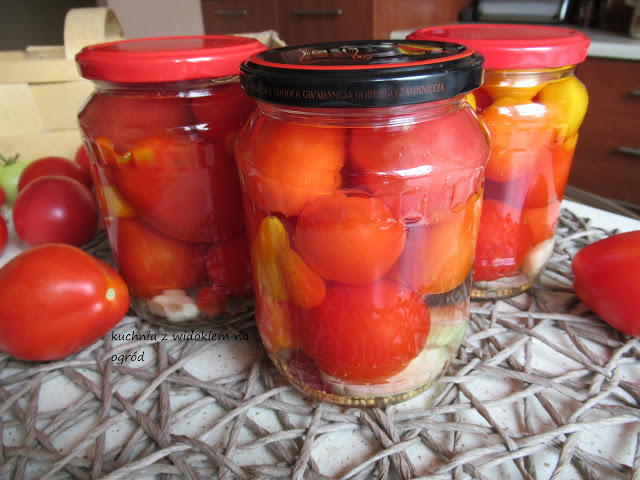 Pomidory w zalewie z czosnkiem i cebulą na zimę. Domowe przetwory.