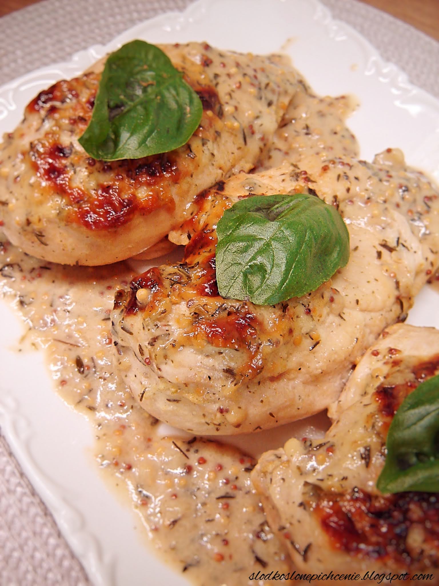 Pierś z kurczaka zapiekana w sosie miodowo-musztardowym z dodatkiem śmietany kremówki to…
