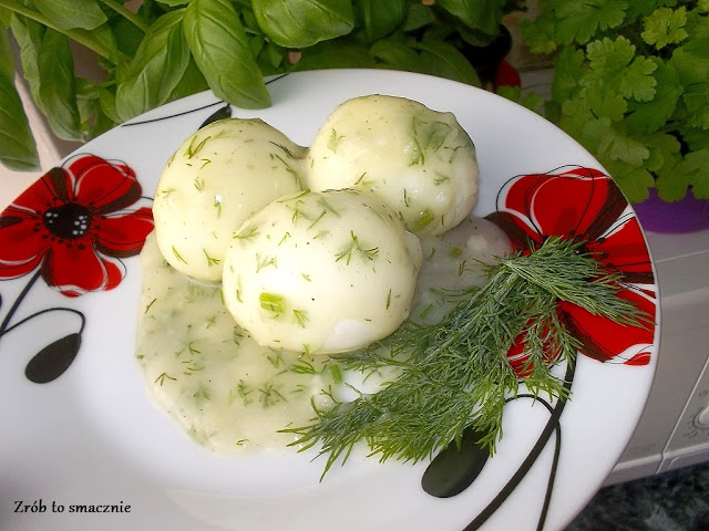 O tej porze roku takie jajka w sosie koperkowym podane ze świeżymi ziemniakami smakują rewelacyjnie.