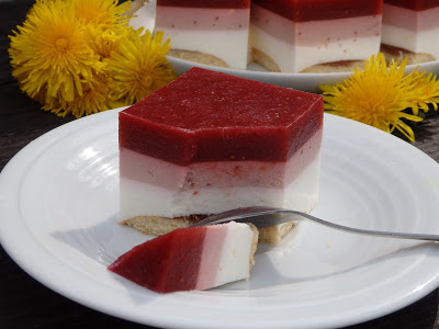 Uwielbiam przeróżne serniczki na zimno. Akurat mamy sezon na rabarbar więc postanowiłam wykorzystać go do zrobienia takiego serniczka. Rabarbar sam jednak jest bardzo kwaśny więc połączyłam go razem z truskawkami. Truskawki nadały słodszego smaku i poprawiły kolor musu. Wyszedł mi naprawdę pyszny serniczek, który nie tylko świetnie smakował ale także