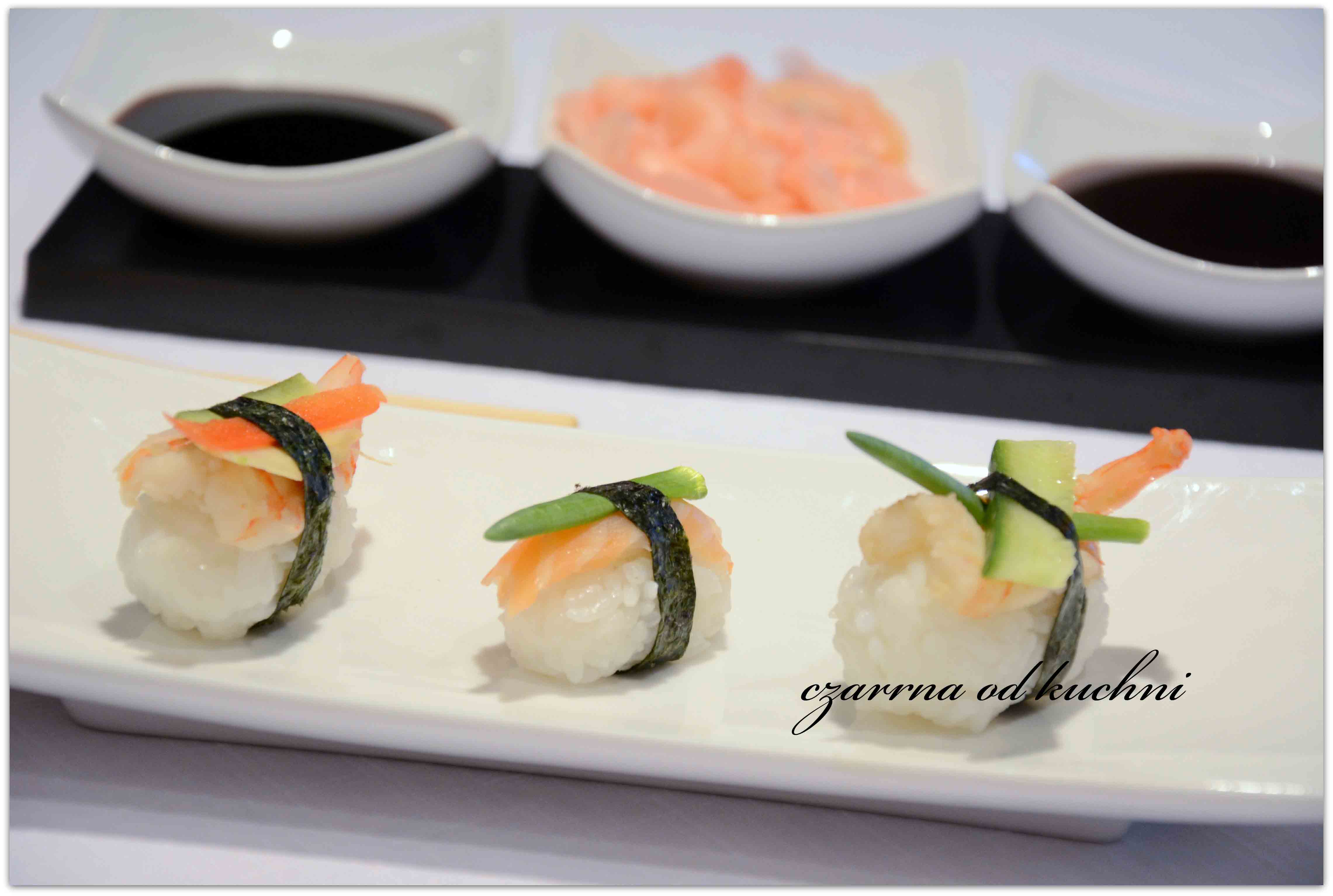 Najprostsza wersja sushi. Bez zwijania Składniki ryż do sushi 100 g krewetki 5-6 sztuk paluszki surimi 1 szt łosoś wędzony 1 plaster ogórek zielony 2 plasterki papryka czerwona 2 paski …