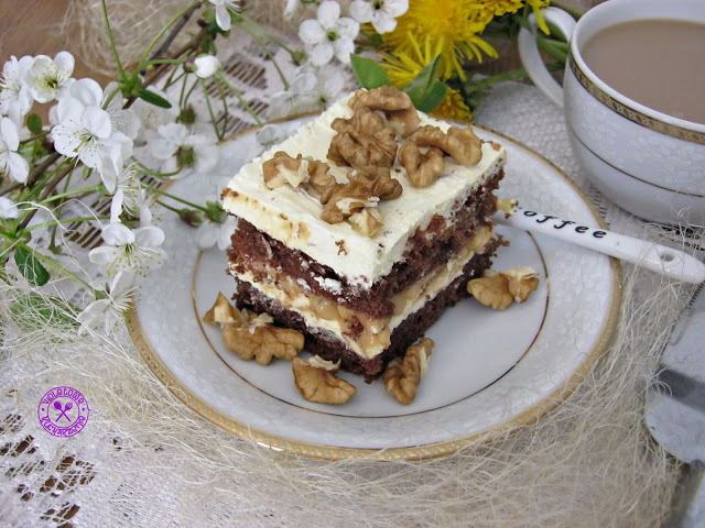 Pyszne ciasto z biszkoptem przypominającym murzynka, delikatnym kremem budyniowym i chrupiącym ryżem preparowanym oblanym przesłodkim kajmakiem. Całą słodycz łamię malinowa konfitura. Ciasto idealne do kawy!