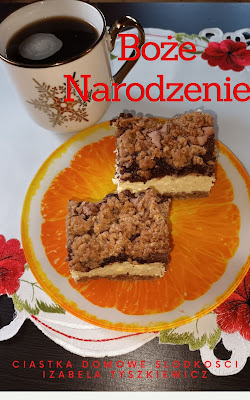 Biszkopt:3 jajkaSzczypta soli3/4 szklanki cukru6 łyżek oleju5 łyżek wody3/4 szklanki mąki pszennej1 łyżeczka proszku