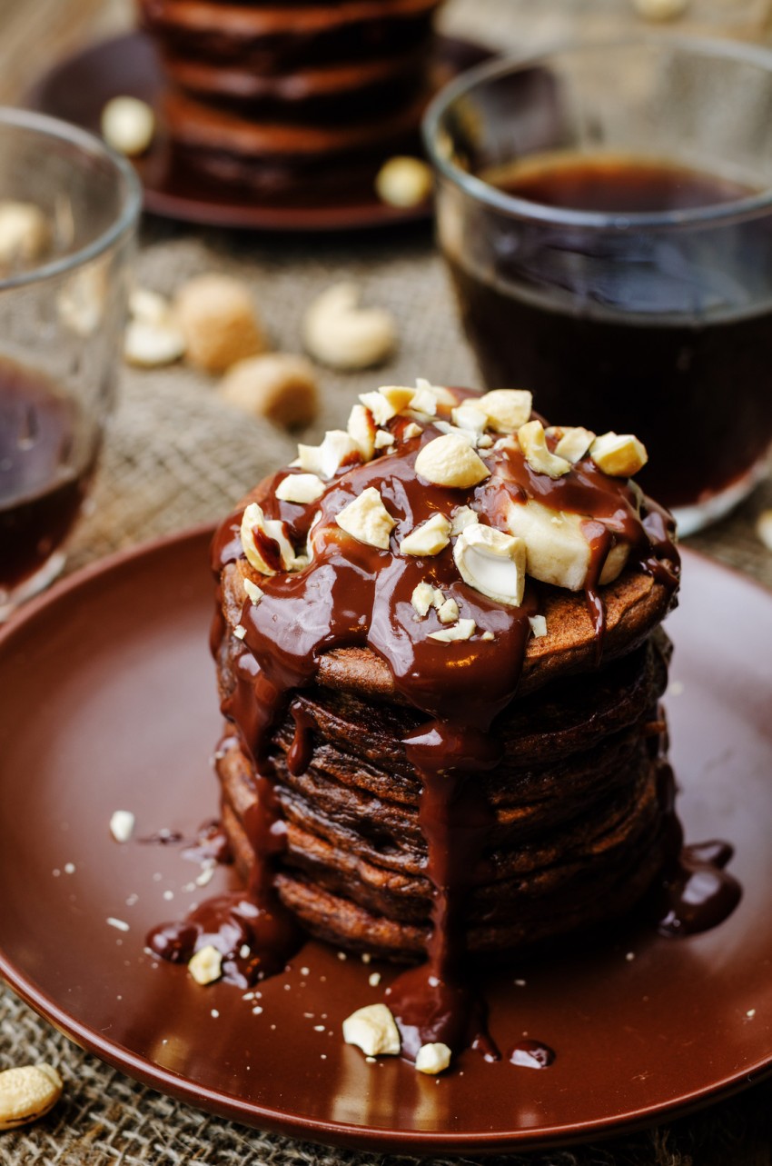 CZEKOLADOWE PANCAKES Z BANANAMI I ORZECHAMI
