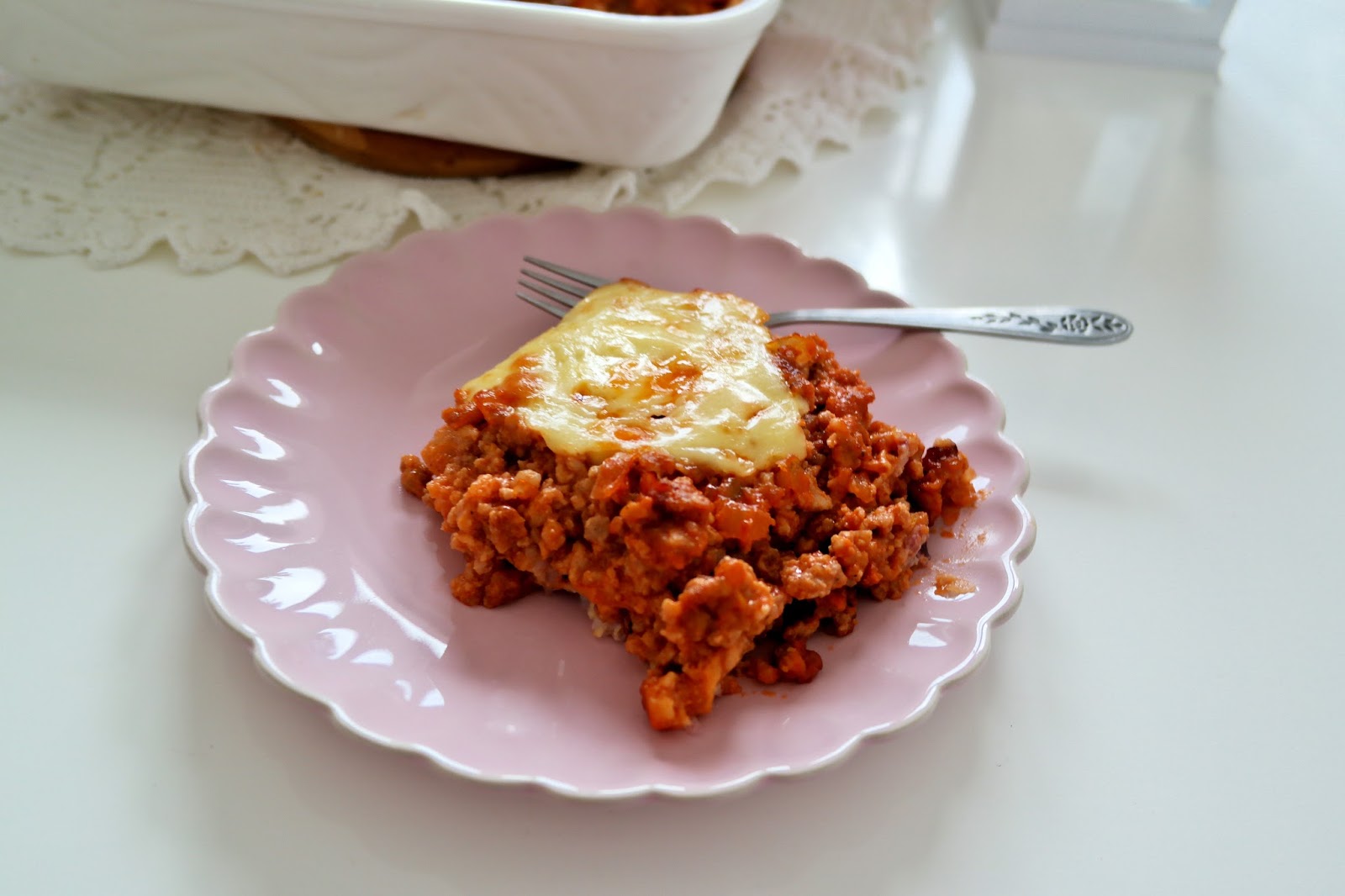 Pyszna zapiekanka na ryżowo kapuścianym podłożu, która po zapieczeniu rozpływa się w…