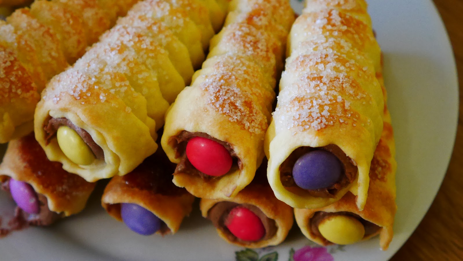 Pyszne rurki z czekoladowym kremem. Idealne na dziecięce imprezy. Ozdobione kolorowymi, czekoladowymi…