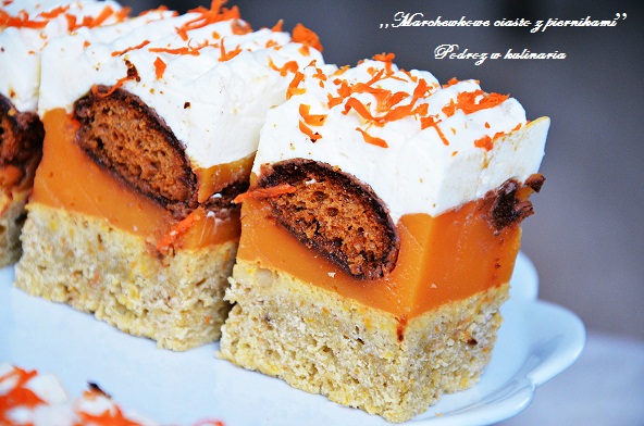 Puszysty biszkopt z masą śmietanową, i pierniczkami typu Katarzynki. Efektownie wyglądające i…
