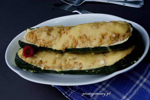 Przygotowanie :Umyte cukinie przeciąć na pół i wydrążyć środekKaszę ugotować wg przepisuSer feta