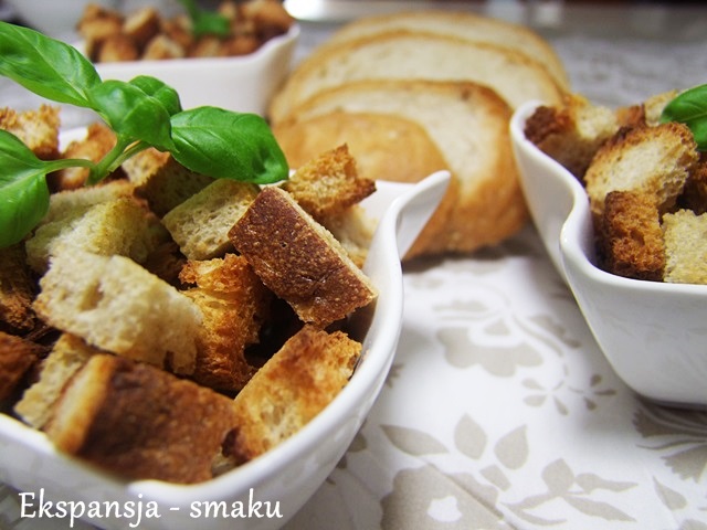 Grzanki – to, jak dla mnie świetny dodatek do zup. Kremowe zupy bardzo często podaję mojej rodzince. Brokułowa, kalafiorowa czy ogólnie warzywna to moje ulubione zupy z których robię krem. Tak przygotowane danie podaję oczywiście z pachnącymi i chrupkimi grzankami. Te małe , pieczone kostki chleba możemy również dodać do