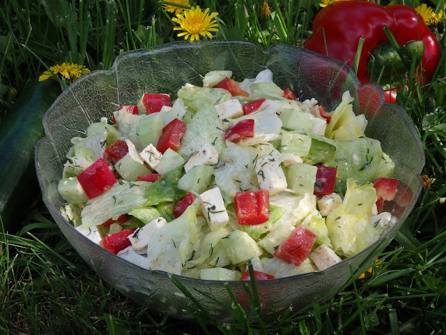 Prosta sałatka na bazie sałaty lodowej. Do sałaty dorzuciłam paprykę, ogórrki i…