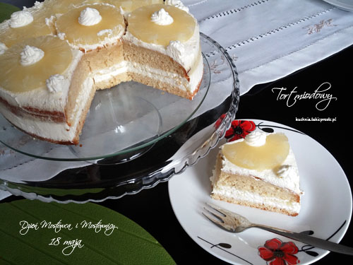 Tort miodowy tym razem został jak zwykle wykonany przez dwie Mostownice – Matkę i Córkę, nocną porą, kiedy to ledwo trzymały w rękach mikser i inne słoiki z miodem, bo cały dzień i