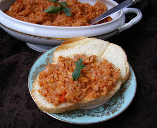 makrela wędzona 1 większa, ryż 1,5 woreczka, olej rzepakowy 1/4 szklanki, cebula 2 sztuki, cukier