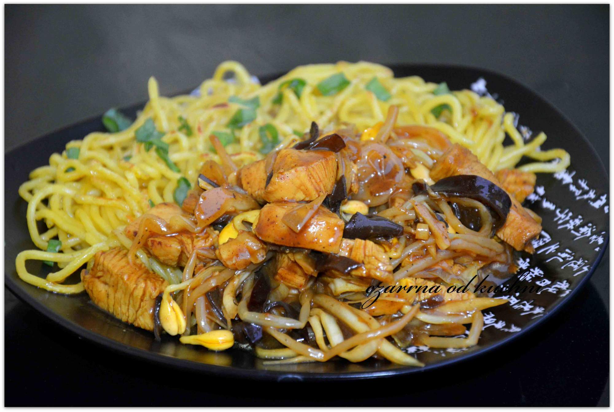 Szybki, orientalny obiad. Składniki makaron do dań z woka 1 opakowanie filet z kurczaka 1 pojedynczy kiełki sojowe 1 słoik grzyby mun 1 garść kapusta biała 2 garści przyprawa orientalna …