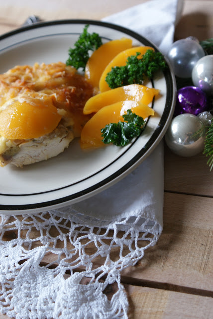 Filet z kurczaka zapiekany pod brzoskwinią.
