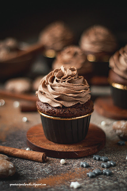 Pyszne czekoladowe babeczki, nadziane powidłami śliwkowymi i udekorowane kremem piernikowym 🙂 Idealne…