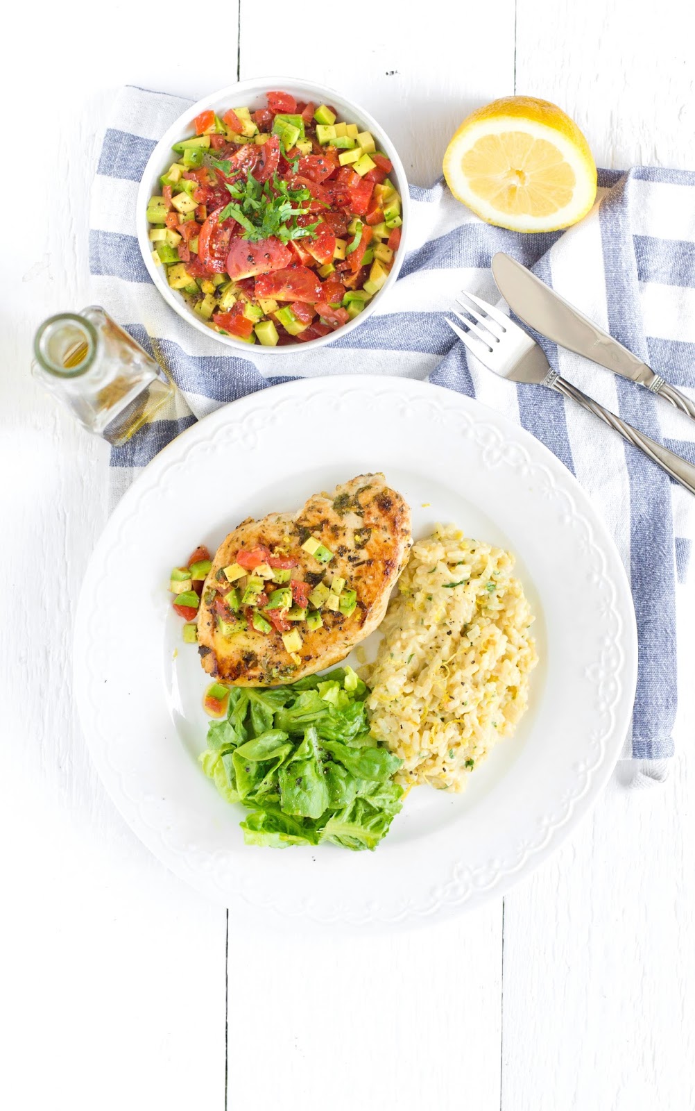 Dzisiaj zapraszam na cytrynowy obiad. Nie obawiajcie się, cytryna wcale tutaj nie dominuje, a to połączenie jest po prostu pyszne 🙂 Kremowe, cytrynowe risotto, kurczak marynowany w natce pietruszki i soku z cytryny, do tego pyszna, lekka sałatka i cały obiadowy zestaw gotowy. To również idealny zestaw, który