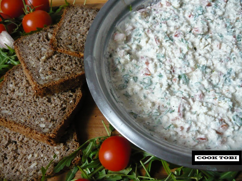 Twaróg śniadaniowy z rukolą i pomidorkami